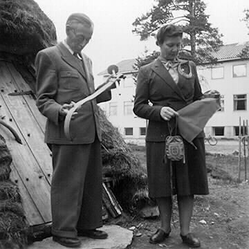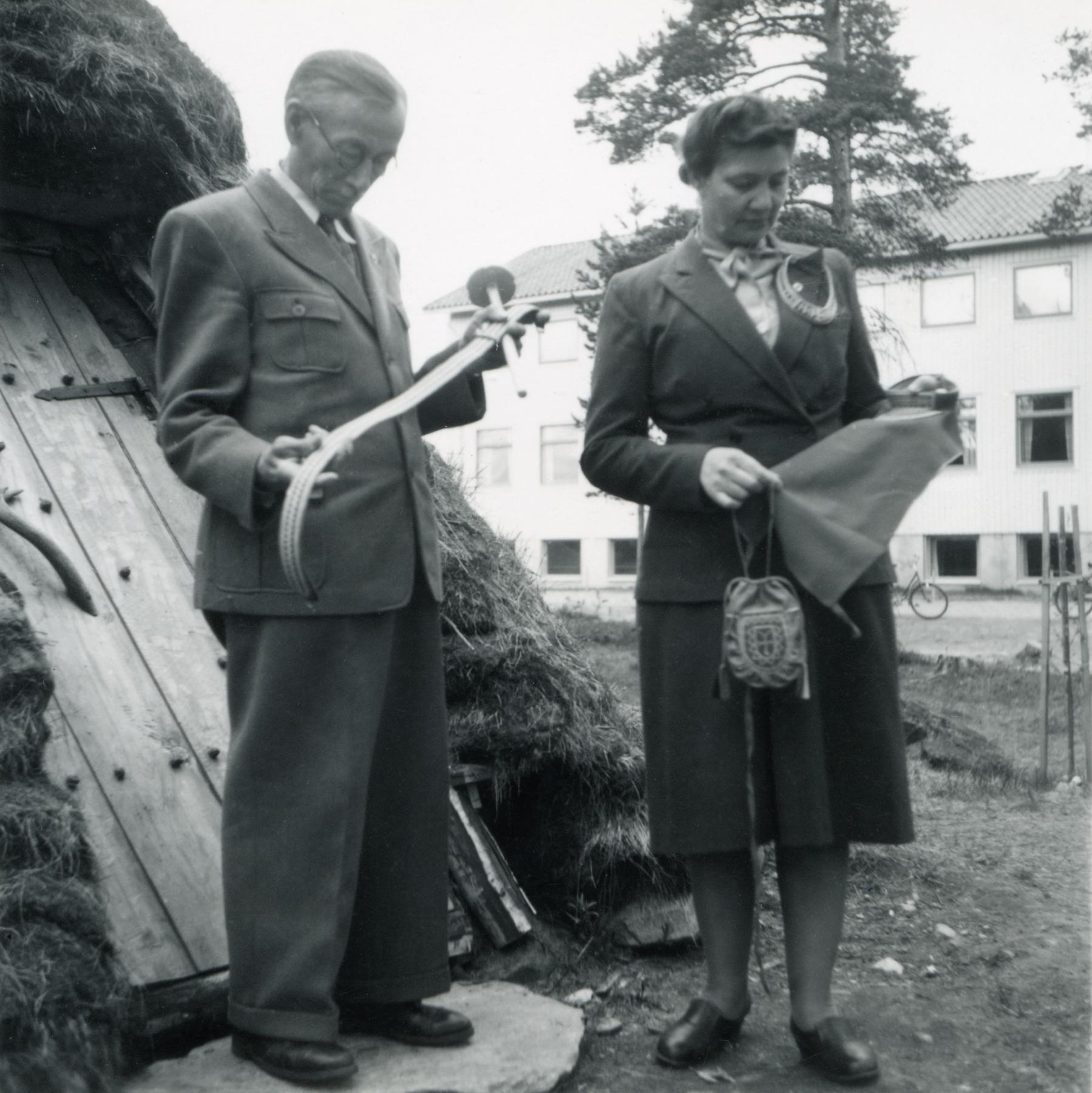WallmL:01411:A :: folkhögskola, torvkåta, man, kvinna, slöjdare, par, slöjd