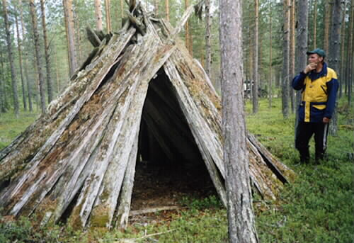 4:32 Ängesån Dammiberget, den äldsta kåtan i Ängesån, typ näverkåta av brädor