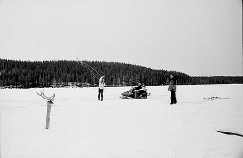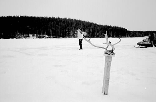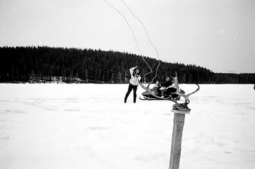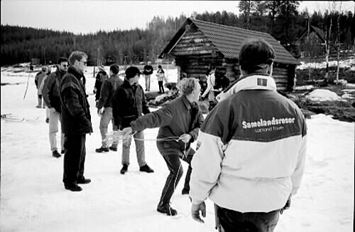 en grupp danska turister lär sig att kasta lasso vid Polcirkelns turistanläggning.