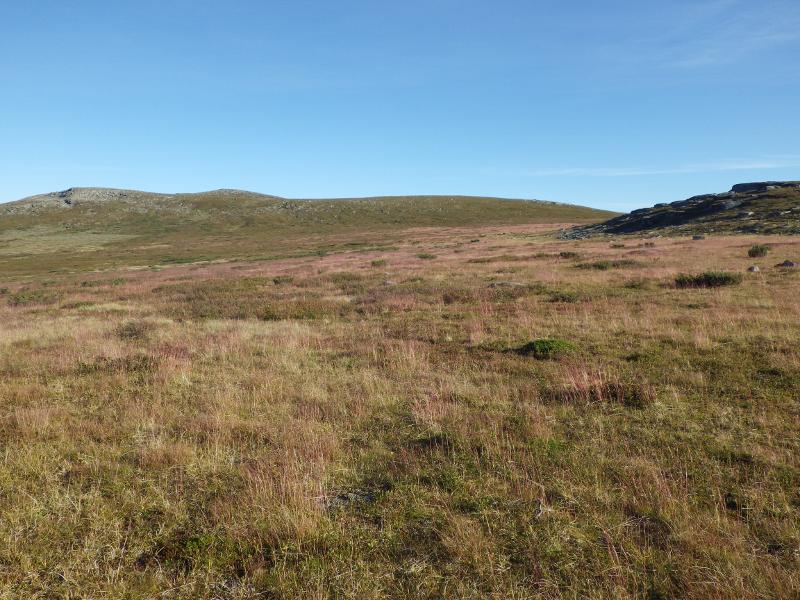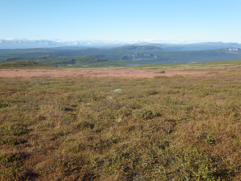 Tre bilder av vallartad kruståteldominerad mark på norra sidan av Muorrabårktjåhkkå.