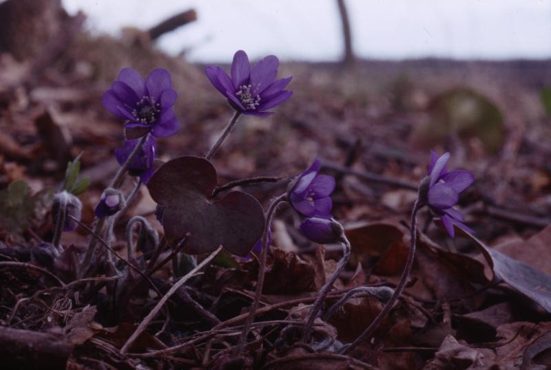 NilssonE:28:00313:D :: Miljöbild, växter, blåsippa, Ranunkelväxter, Hepatica nobilis Schreb, Ranunculaceae, Hepatica