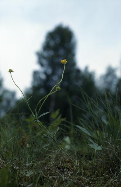 NilssonE:28:00354:D :: Majsmörblomma, backsmörblomma, Ranunculus polyanthemos L., Ranunculaceae, Ranunculus, backranunkel, vanlig backsmörblomma, skogssmörblomma, lundsmörblomma, ängssmörblomma, R. nemorosus DC., växter, R. tuberosus Lapeyr. (ssp. nemorosus), R. polyanthemoides Boreau, R. polyanthemos L. var. latisectus Neilr. (ssp. x polyanthemoides), Miljöbild