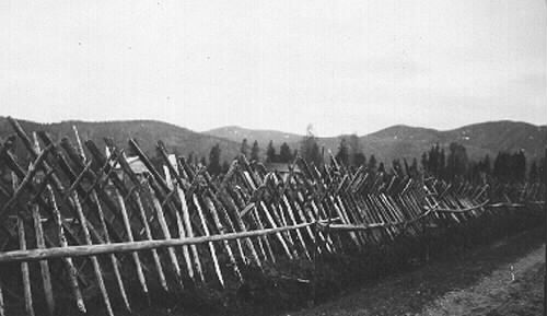 baksidan: gikhage vid Forsnäs vid n:avva A. H. 30 juni 1923. Ovan: figur 7, gikhage vid Forsnäs i östra änden av Saggat. Ett extra stängsel uppsatt utanför hagen. Förf. foto 30 juni 1923