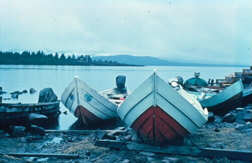 1986:8:00168:D :: fjällsjö, forsbåt, brygga, hamn