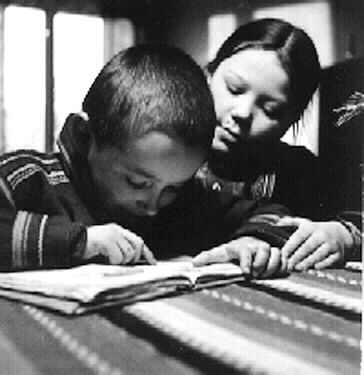 1986:5:00049:A :: skolsal, skolelev, pojke, flicka, läsebok, barn