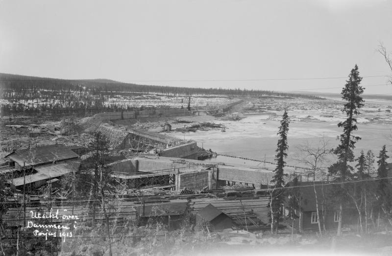 utsikt över dammen i Porjus 1913