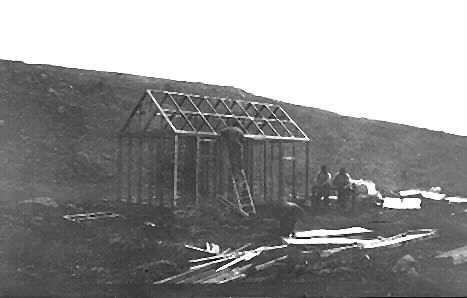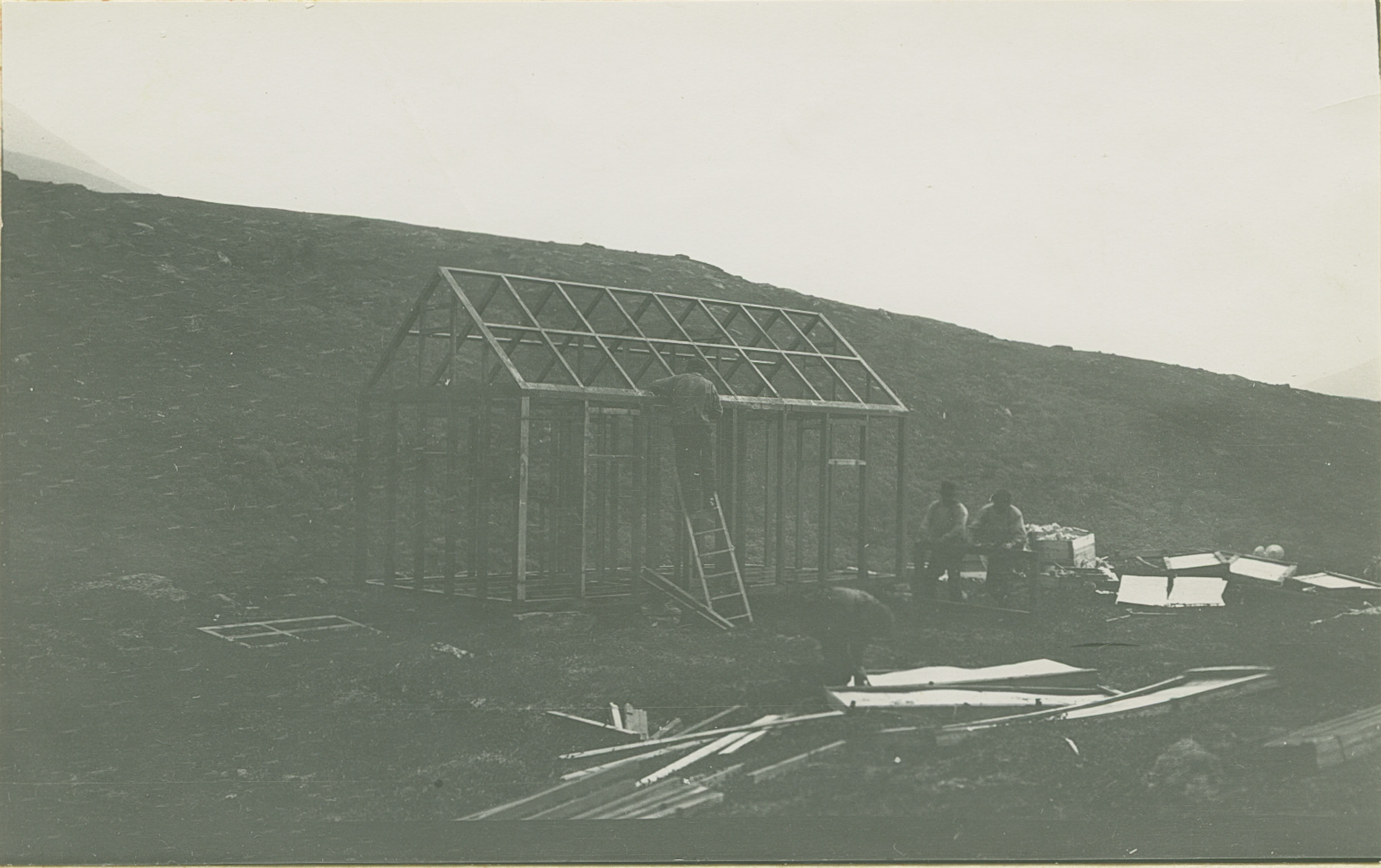 HambeA:00270:A :: fjällvärld, bygge, byggnadsarbete, man, byggnadsarbetare, byggnadsutrustning, stege