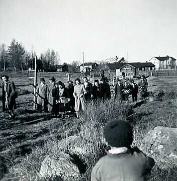 slöjdkonferens i Jokkmokk september 1947. Deltagarna på väg till ett möte