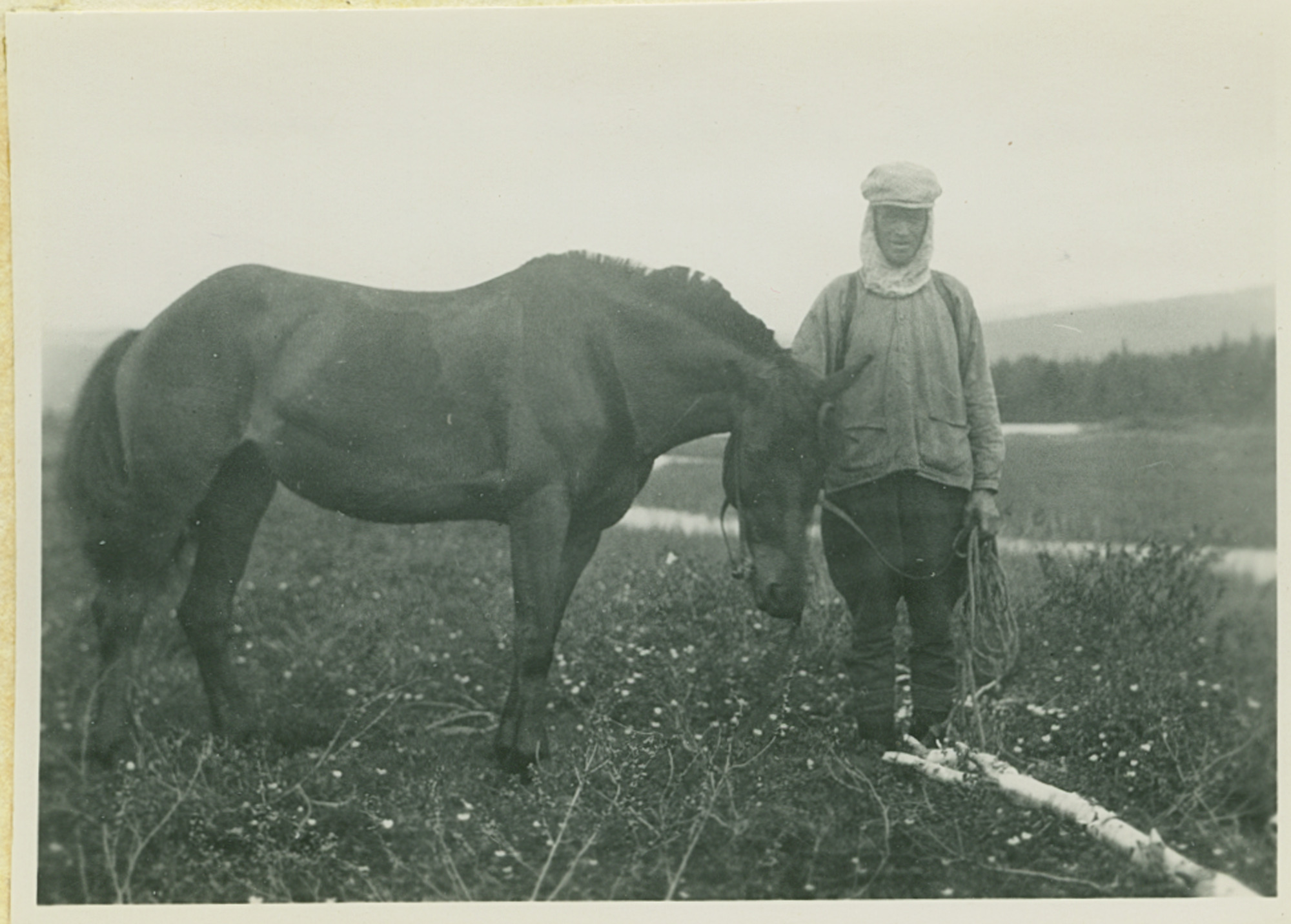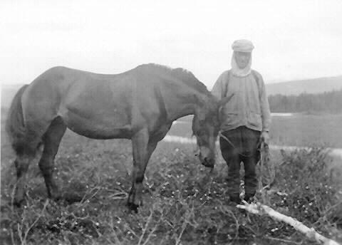 Arvid Nilsson och ridhästen vid Tatasjön 4 juli 1931