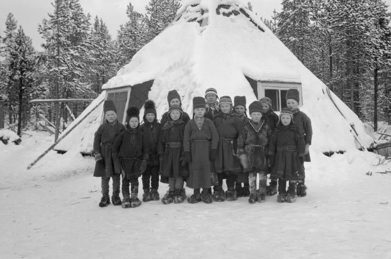 1986:1:00737:A :: skolkåta, nomadskola, skolelev, vinter, barn
