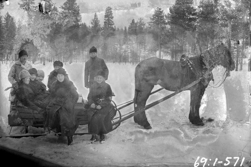 hästtransport; Om fotografen Anders Jakobsson berättar hans dotter Elin Jakobsson i boken "Porsi i ord och bild" från 1992.Hon berättar att fadern var fotograf. Den första i "södra delen av socken". Wästfelt från Jokkmokk var fotograf i Norra delen. Anders började nog fotografera 1899-1901. Glasplåtar. Det fotograferades till vigslar, barndop, begravningar, beväringsfoton, familjefoton, ja det mesta som hände i bygden. Enligt boken dog Anders Jakobsson föräldrar och barnen utackorderades då. Den äldste sonen Anders Jakobsson kom till en bondgård ett par mil längre bort som heter Padjerim. Där fick han slita ont med så lite materiella förnödenheter som möjligt. Någon hästkarl var han nu inte, han hade desto mer håg för maskiner och dylikt. Den lille klena gossen sysslade med sina uppfinningar, till de äldre och kamraternas förundran. Han var ej lik de andra. Anders var medlem i Missionsvännerna i bygden. Han skänkte marken som Missionshuset byggdes på i Porsi. Anders Jakobsson sysslade med mycket, som hans kropp orkade med. Han var klockslagare, och lagade allt möjligt, han snickrade m.m. När han fyllt 50 år tog han körkort i Luleå. Han köpte den första bilen i Porsi, år 1923, tydligen en lastbil. Anders Jacobsson föddes år 1865 och dog år 1940.
