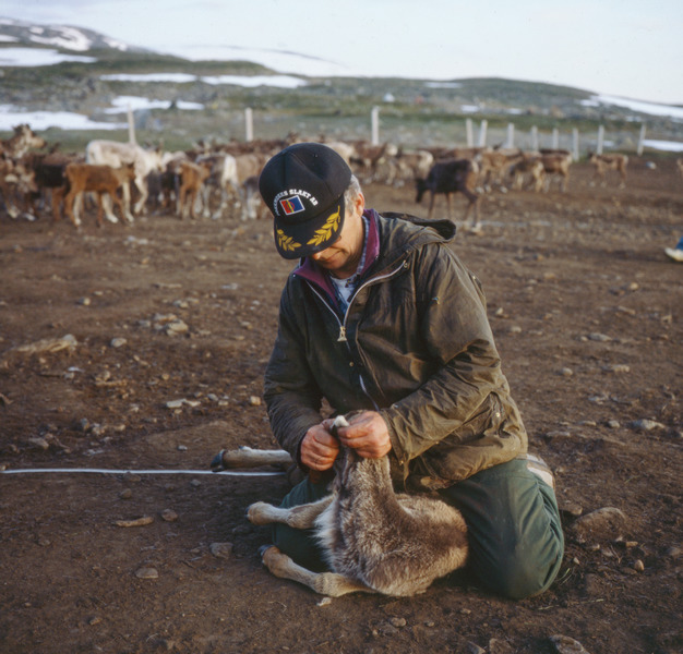 Bertil kielatis märker ren kalv i Skuolla