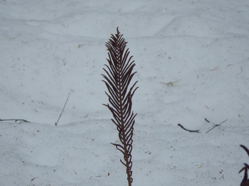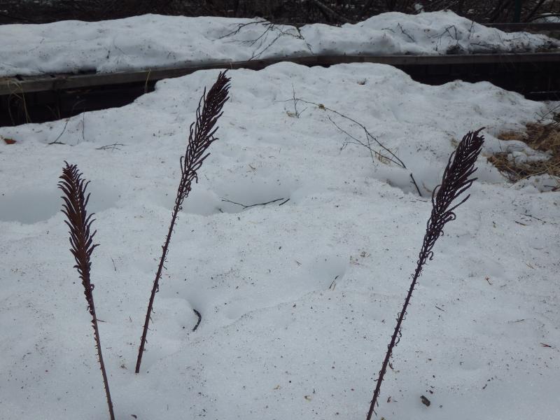 AJF:59:2016:0049 :: Matteuccia struthiopteris, Onocleaceae, fjällbotanisk trädgård, Ájtte Fjällträdgård, pärlbräkenväxter, snö, strutbräken