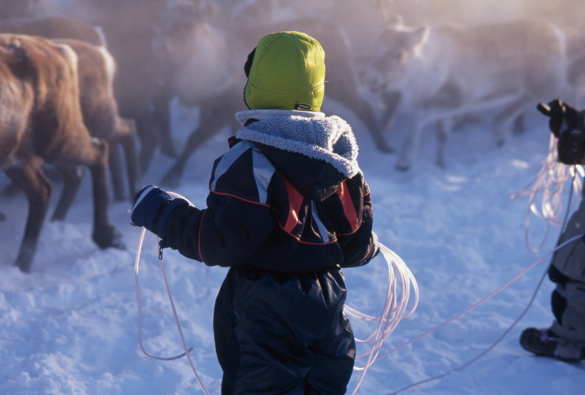 L:21:2000:1532 :: Renar, Renar i hage, Renskötare, barn, lasso