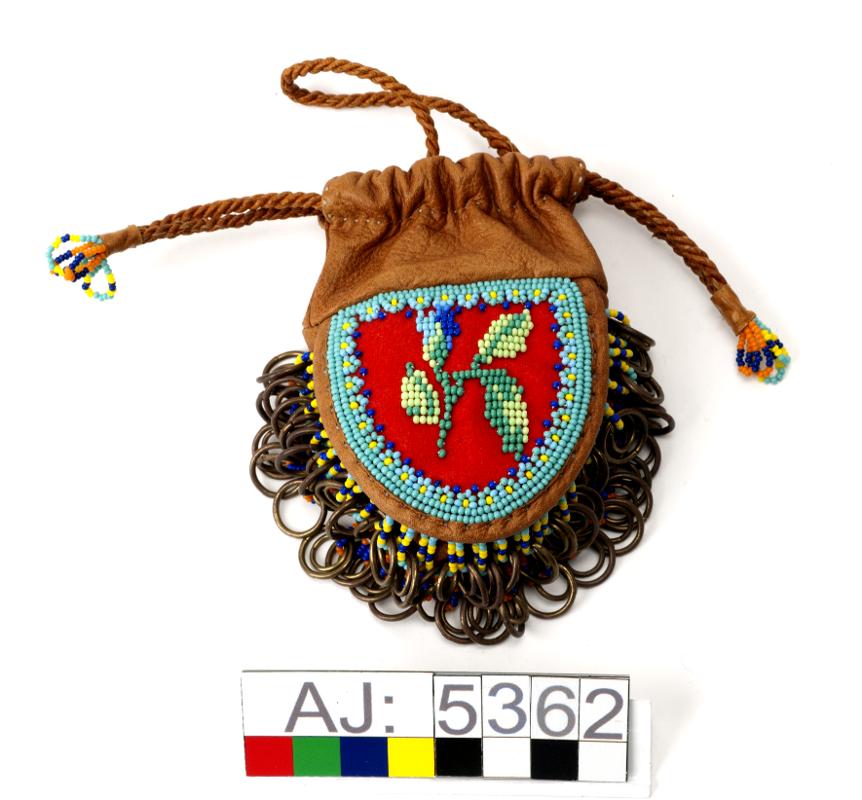barkgarvat renskinn, kläde, pärlor, mässing; klÏssedh; gåarodh