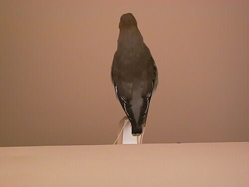 Hane; funnen död (flugit mot fönster). Fyndplats: Jokkmokk, taxikiosken (samhälle)