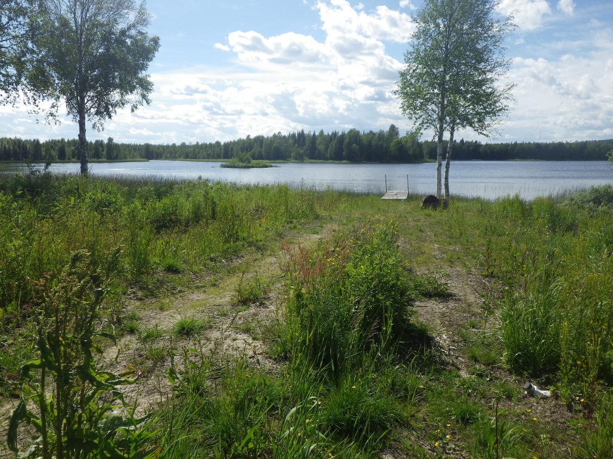 - Biotopbild av nedfarten mot Bodträsket. Bilden tagen mot öster med Orrskatan på andra sidan sjön och holmen Lillgrundet. På bilden syns bl.a. blommande gårdsskräppa, smörblomma och sumpfräne.