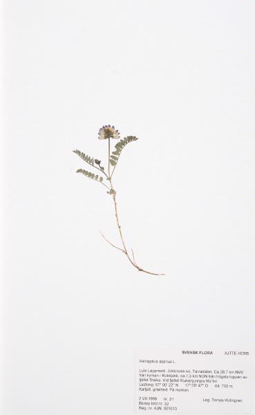 Insamlad. Fyndplats: Tarradalen. Ca 28,7 km NVV från kyrkan i Kvikkjokk, ca 7,3 km NON från högsta toppen av fjället Staika. Vid fjället Riukonjunnjes NV fot.