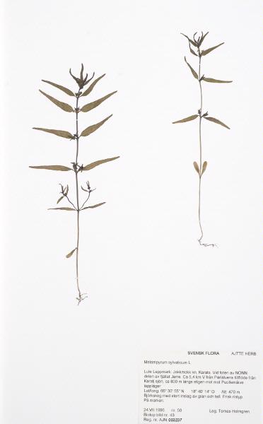 Insamlad. Fyndplats: Jarre. Vid foten av NONN delen av fjället Jarre. Ca 5,4 km V från Pärlälvens tillflöde från Karatj sjön, ca 800 m längs stigen mot Puollemåive lappläger.