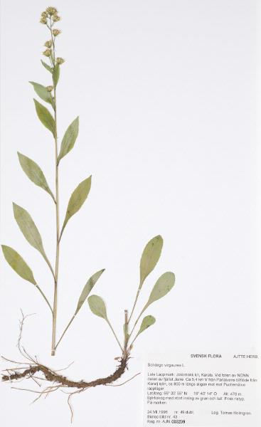Insamlad. Fyndplats: Jarre. Vid foten av NONN delen av fjället Jarre. Ca 5,4 km V från Pärlälvens tillflöde från Karatj sjön, ca 800 m längs stigen mot Puollemåive lappläger.
