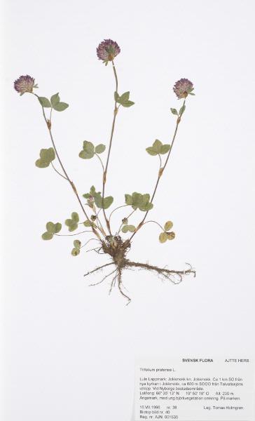 Insamlad. Fyndplats: Nyborg. Ca 1 km SO från nya kyrkan i Jokkmokk, ca 600 m SOOO från Talvatissjöns utlopp. Vid Nyborgs bostadsområde. Lat/long: 66 35' 13" N. 19 50' 18" O. Alt: 230 m. Ängsmark, med ung björkvegetation omkring. På marken.