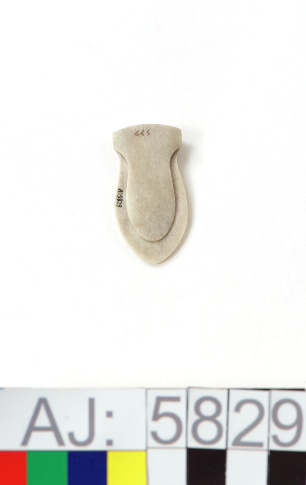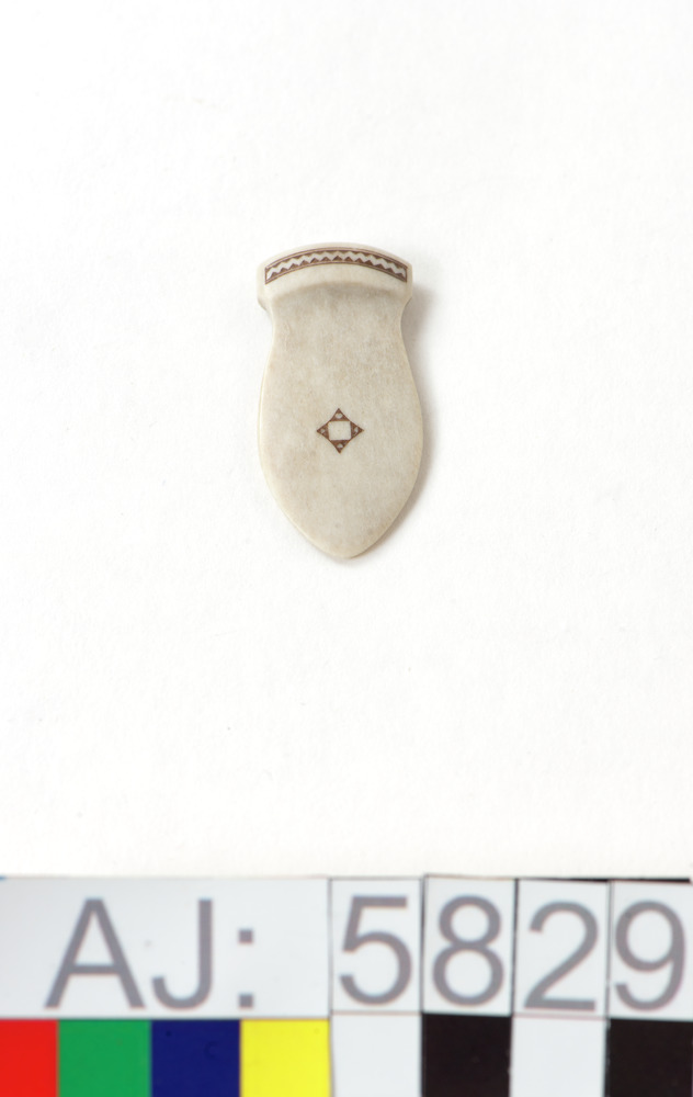 Bokmärken av renhorn. Graverad, i överkant med ett mönster med sicksackmönster och i mitten med en liten fyrkant med mönster i.