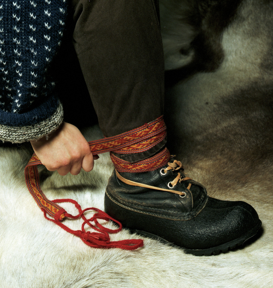 AJF:21:1991:0029 :: skoband, nordsamiska skoband, påtagning av skoband