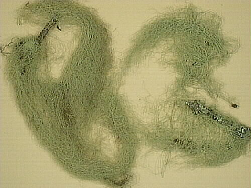 Garnlav är en av de trädväxande lavarna som är viktig föda för renar under vårvintern då marken ofta är täckt av hårt packad snö eller is. Exemplaret insamlades vid Norra Aspberget. NO delen av Norra Aspberget, ca 14 km S från Vuollerim.