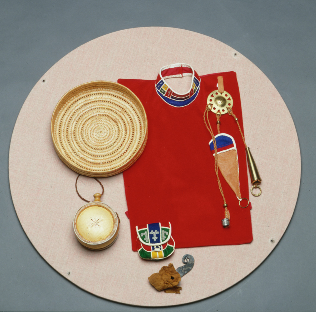 Barmkläde i rund monter. Ev för Huddingedagarna
