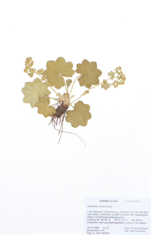 Insamlad. Fyndplats: Nyborg. Ca 1 km SO från nya kyrkan i Jokkmokk, ca 600 m SOOO från Talvatissjöns utlopp. Vid Nyborgs bostadsområde. Lat/long: 66 35' 13" N 19 50' 18" O Alt: 230 m. Ängsmark, med ung björkvegetation omkring. På marken.