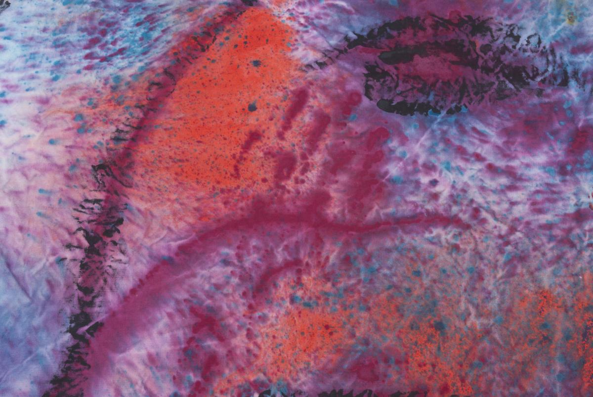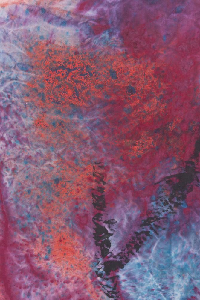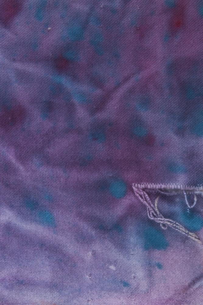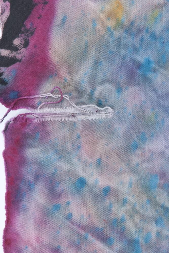 Föremålet är en tygbit som är textilmålat. Konstnären har heller inte spänt upp på ram det på en ram.