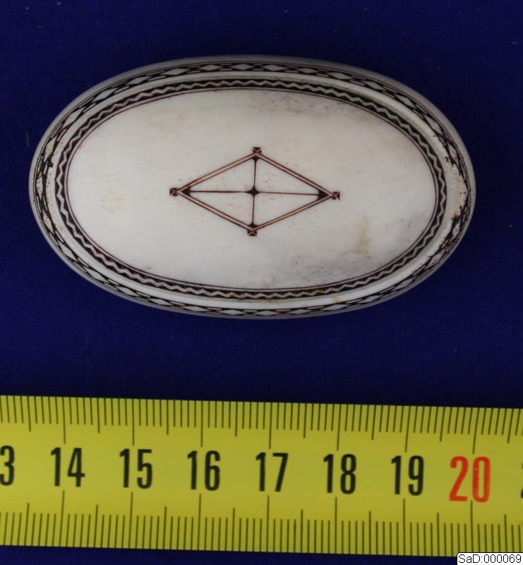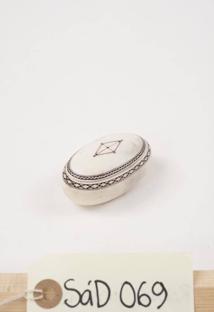 Ask i horn med gravyr på locket.