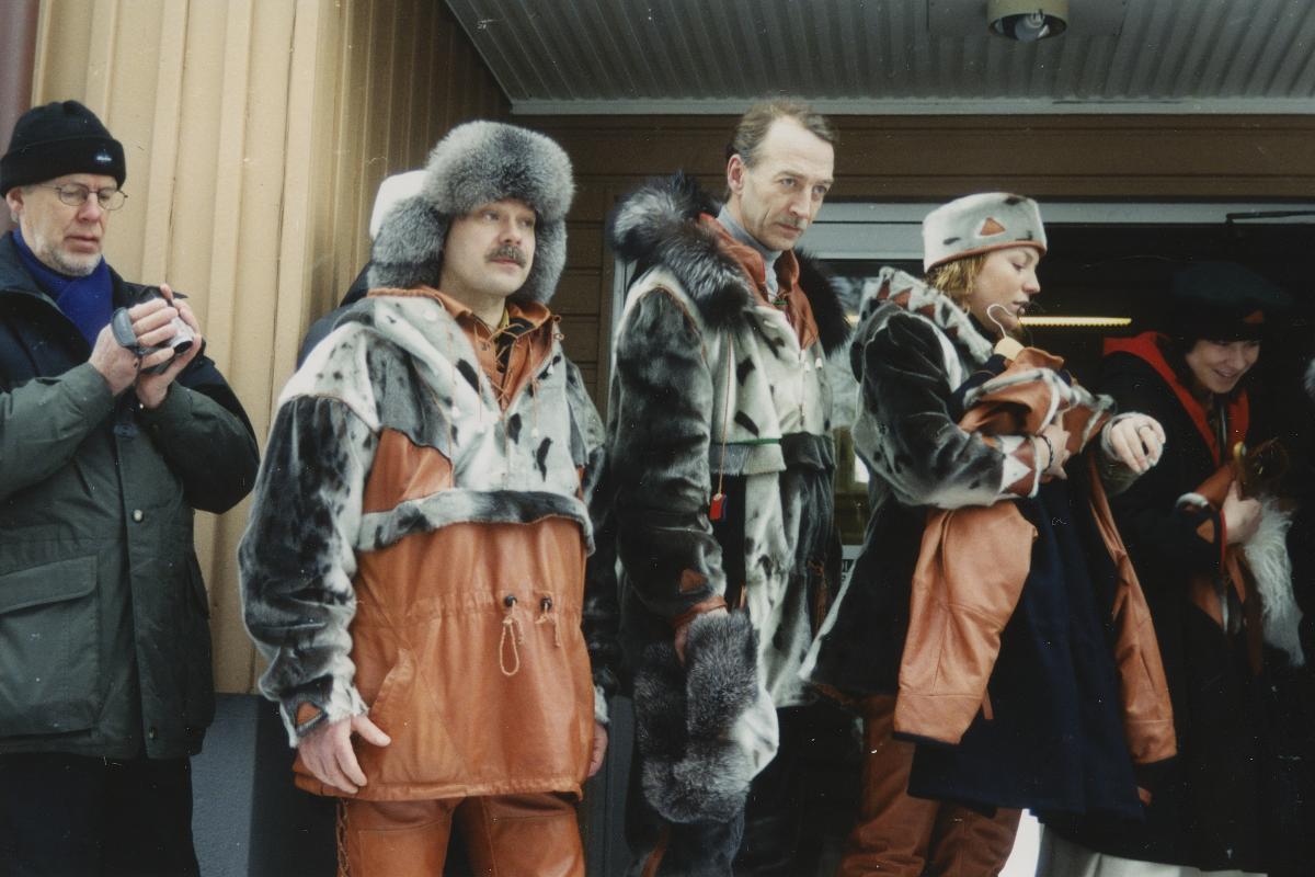Flera personer som bär jackor i sälskinn