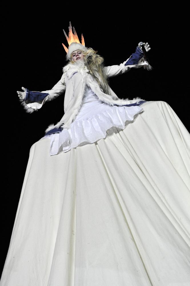 Kvinna bärandes kappa och krona, teatralestetik