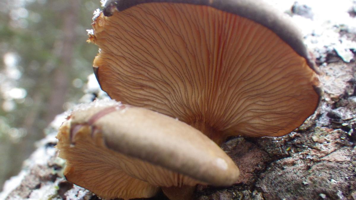 Närbild av svamp AJN:006645 på växtplatsen, en sälg.
