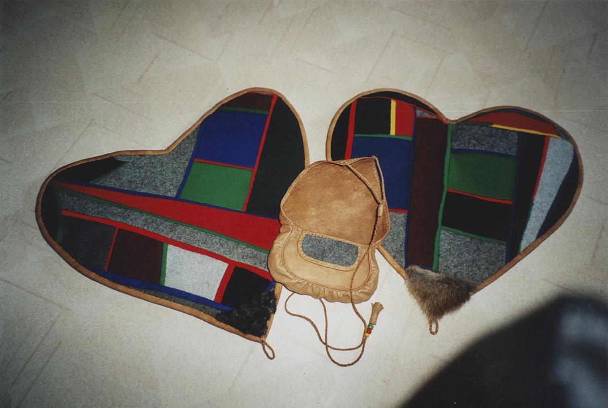 Duodji av Edit Svakko. Två väggprydnader och en sypåse