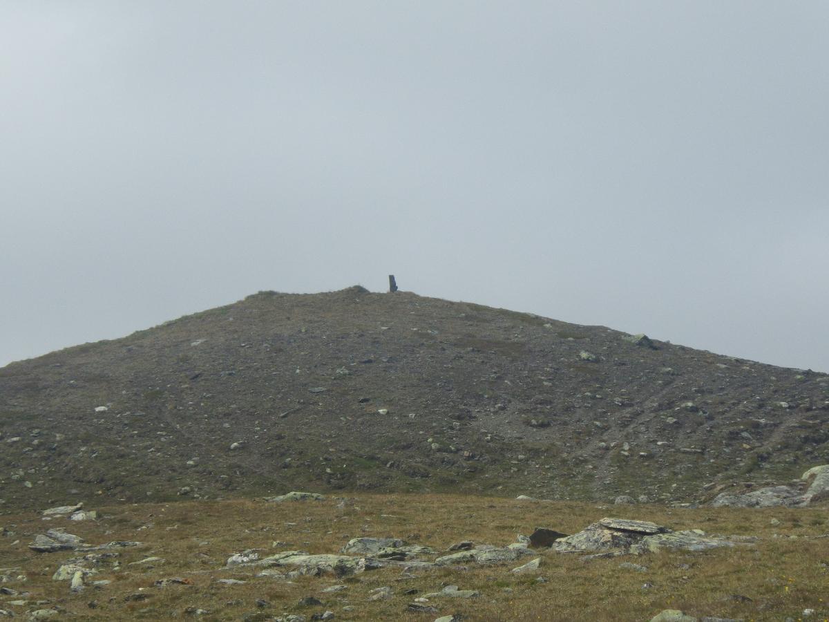 Kulle med röse på flyttvägen upp från Fierrovágge till passet Goallumgurra på leden mot Råvve.