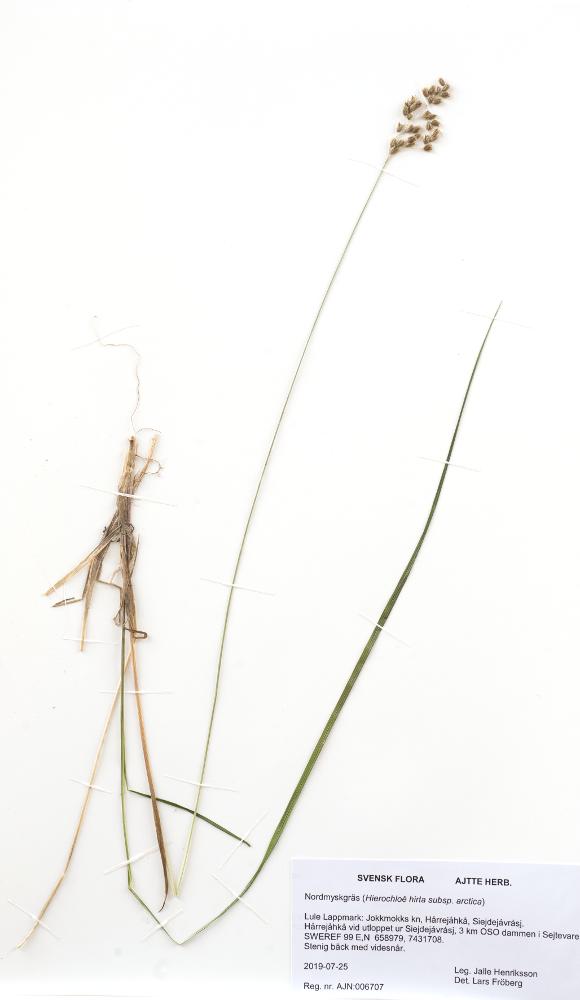 - Myskgräsen är lätt igenkännliga men det är däremot svårare när det gäller att skilja de två arterna åt. Arterna har dessutom underarter. Nordmyskgräset är en underart av raggmyskgräs (Hierochloë hirta, tidigare älvmyskgräs) och är den vanligaste i norra Sverige utom möjligen i fjällen. Myskgräsen har en doft av kumarin, som har ansetts angenäm och har därför använts till att lägga i linneskåp.
