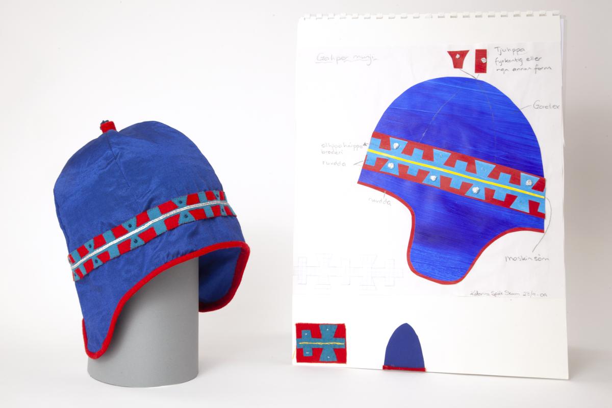 Skiss och den färdiga mössan, AJ:006041.
