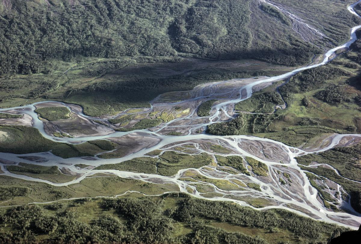 Thielmavadet där Sarvesjåhkå-Ráhpajåhkå möts sett från Låddebákte