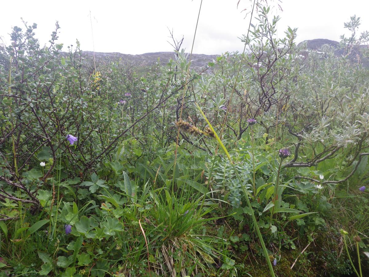 Fjällstarr (AJN:006887) i rik växtlighet.