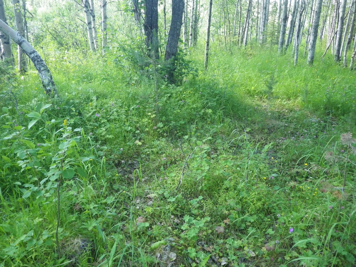 Biotopbild från ängslövskg nära Luleälven. Späddaggkåpa i förgrunden.