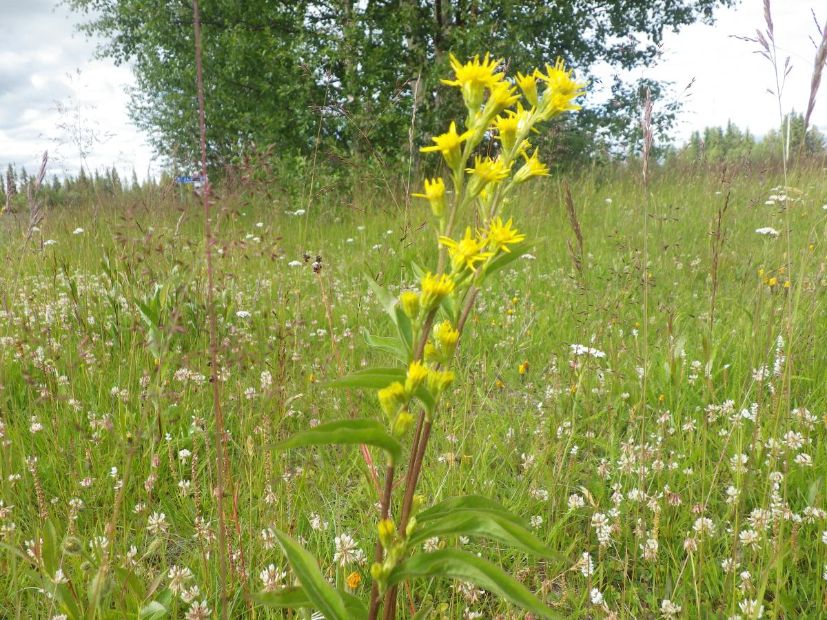 (Vanligt) gullris (AJN:007233) tillsammans med vitklöver, ormrot, röllika, säterfryle, tuvtåtel och rödven.