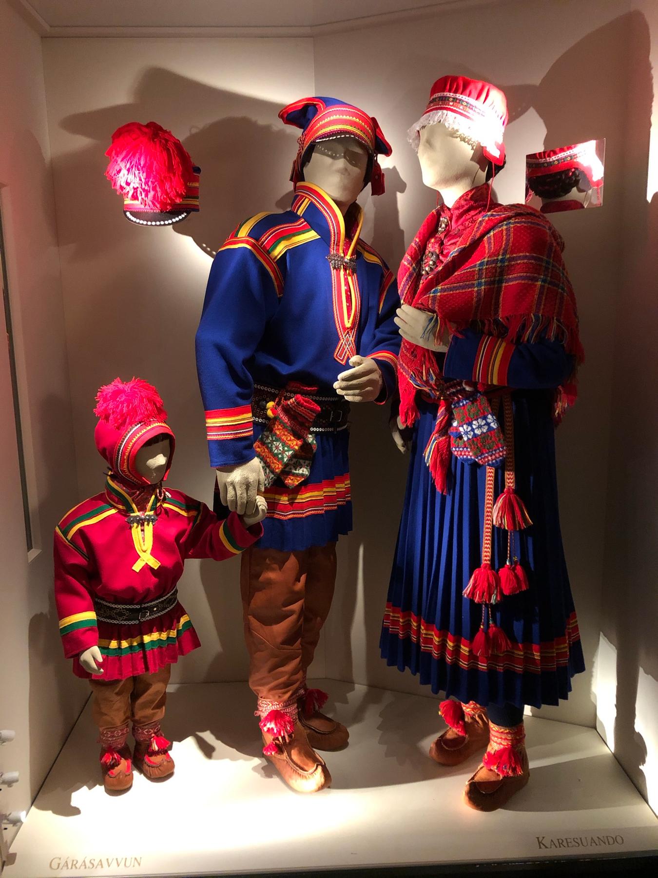 Dräktmontrar i museets permanenta Dräkt- och silverutställning. Karesoando.