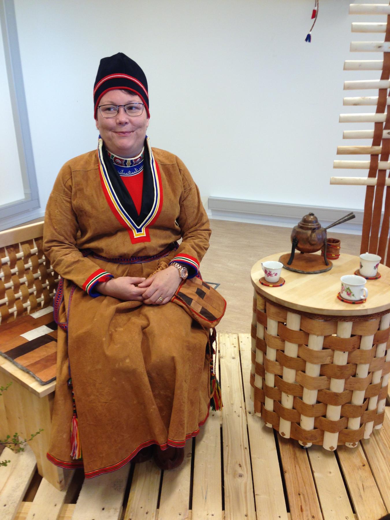 Utställning Goahten 2015-08-10 - 2015-08-17. Examensutställning "Duovdagat" för Master i duodji vid Sámi allskuvla. Masteruppsatsen "Ett koncept om ett rum baserat på hållbara material.En transformering från goahte till heminredning". Verket Goahten består av föremålen Riehpenrájggen, Gievkessuolon, Suolon, Såggen, Bietsávrren, Luojddon, Sálltoluoktan, Mårren ooch fotografi.