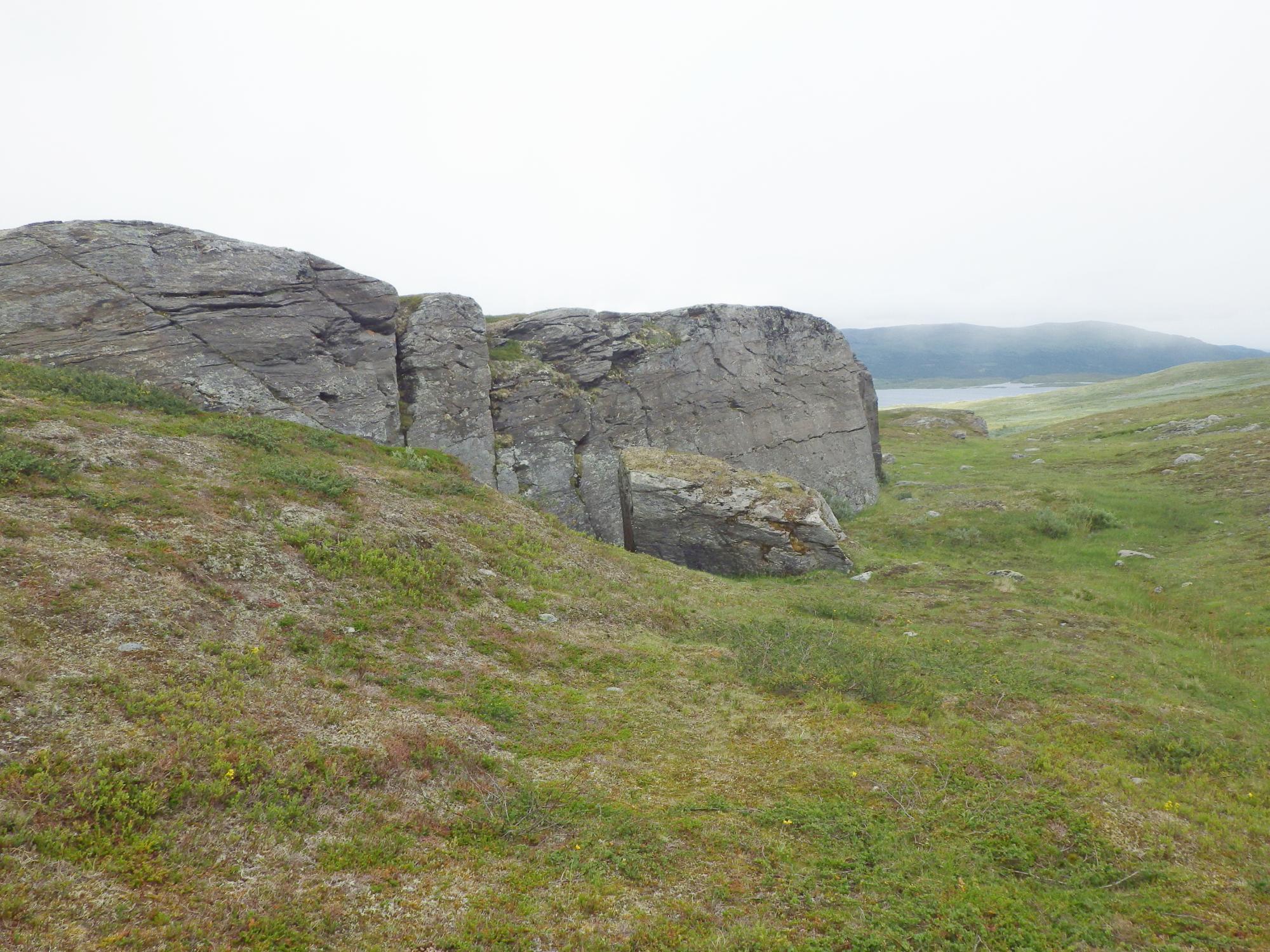 Stor solitär klippa på Själbmás rygg 1320 m S väg 95.