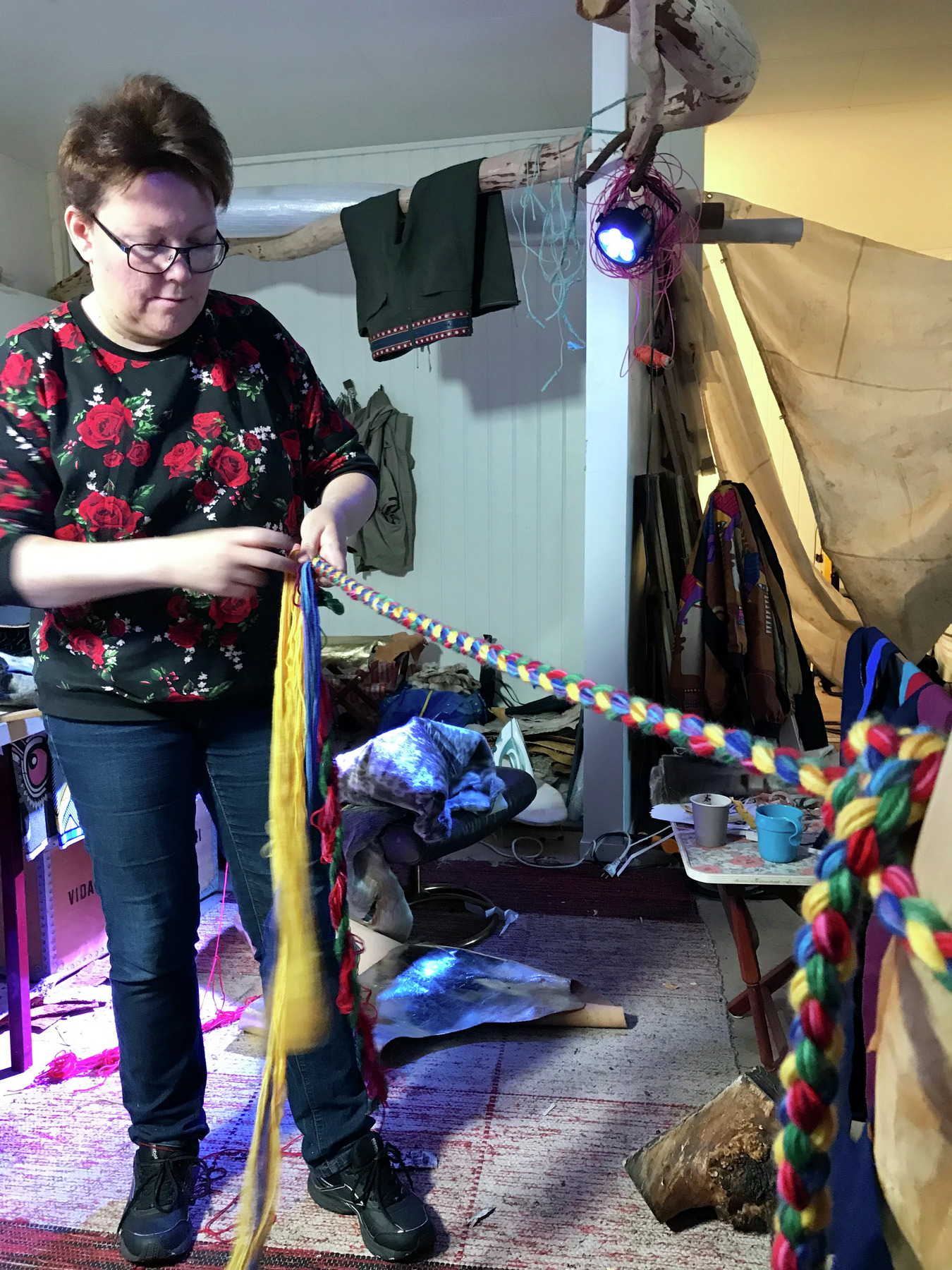 Duodji för Utställning Girjigumpi, ett samarbee med Joar Nango. Harstad, festspillene i Nord-Norge 2018