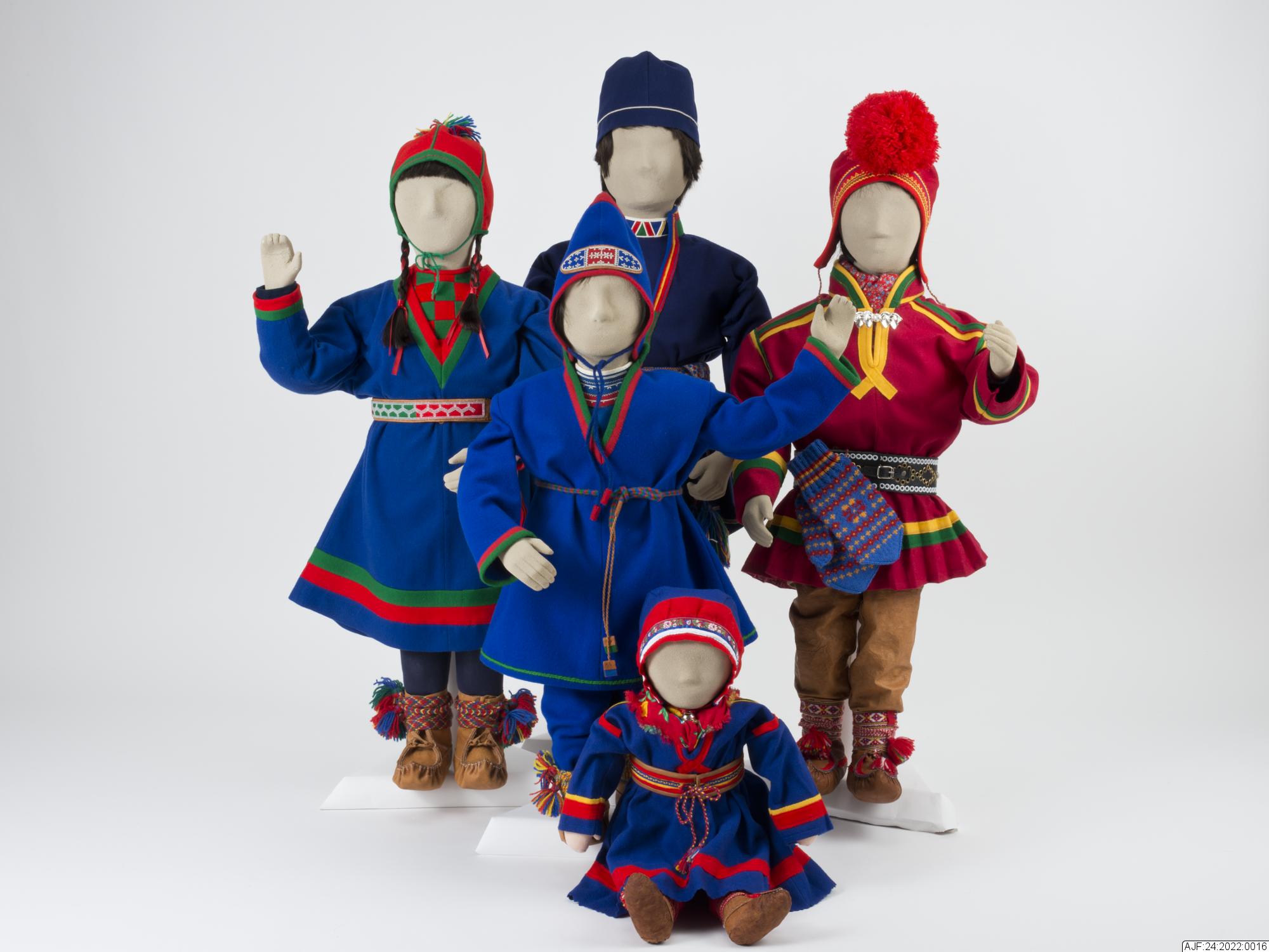 samisk dräkt; docka; sydsamisk dräkt; umesamisk dräkt; jokkmokkssamisk dräkt; nordsamisk dräkt; jukkasjärvisamisk dräkt; transport; museisamling; Etnografiska museiföremål