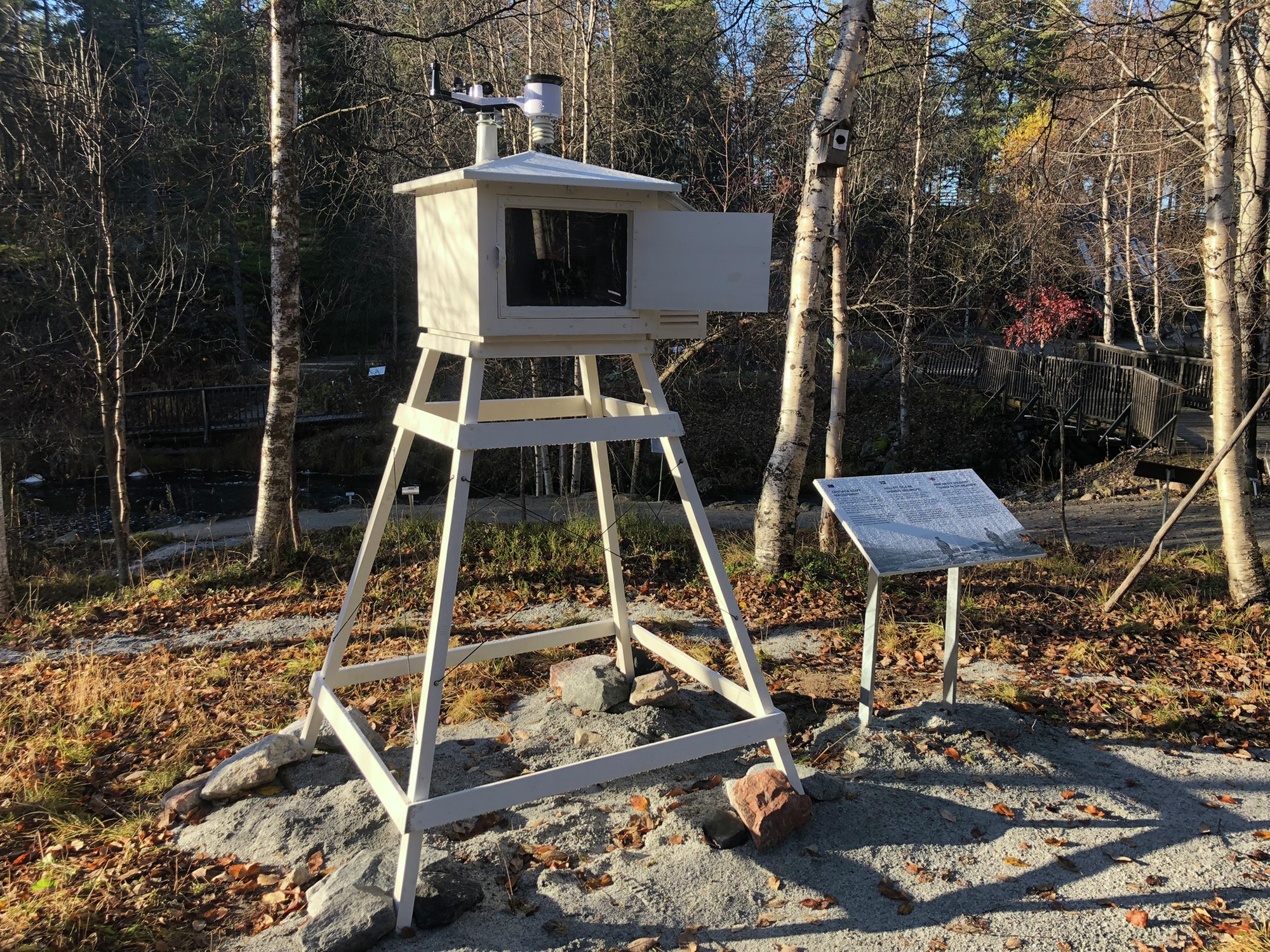 Hambergs forskarstuga i Fjällträdgården med den nya utställningen färdig.