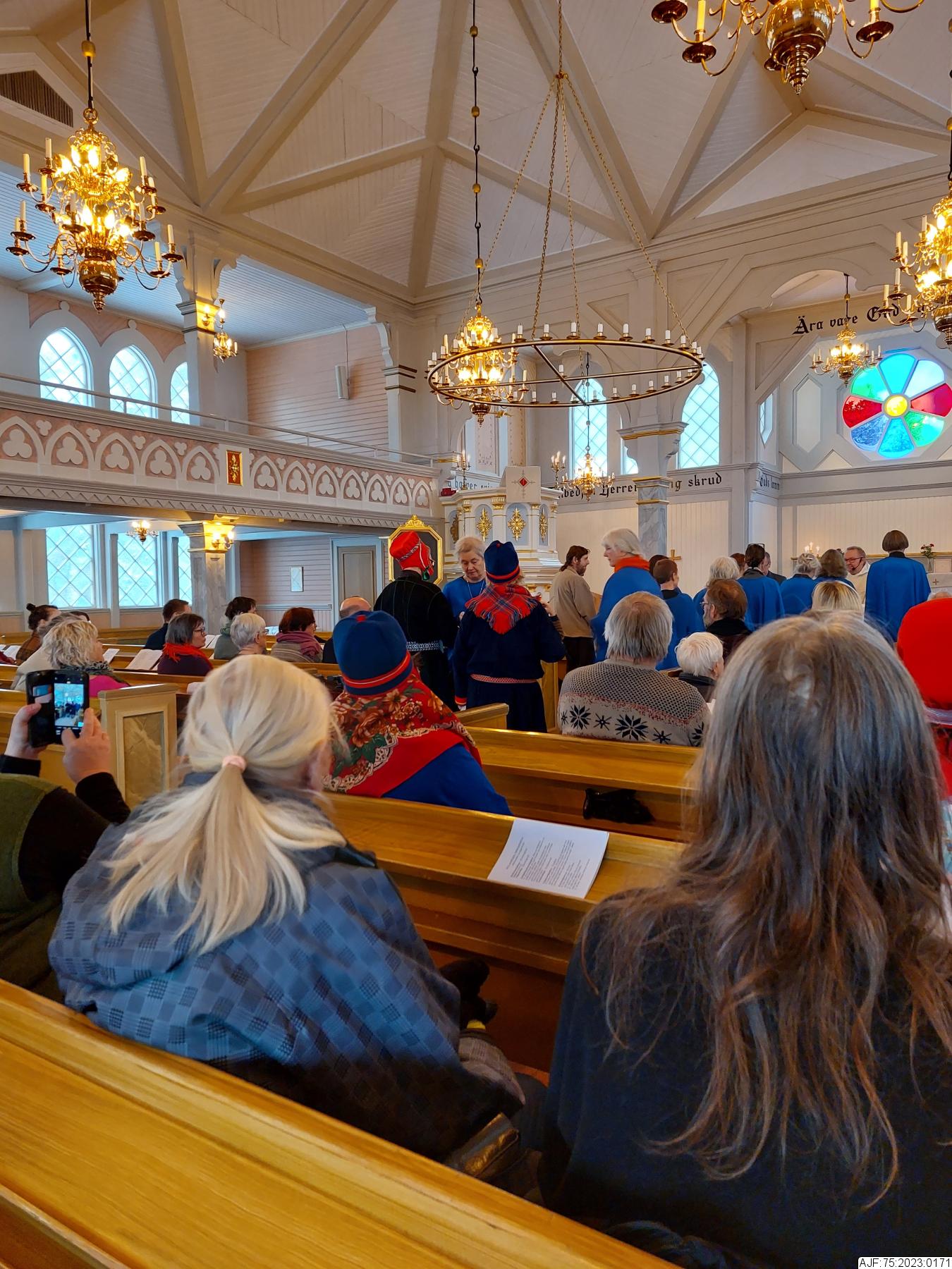 Samiska högmässan som tradtionsenligt avslutar Jokkmokks marknad. I Nya kyrkan i Jokkmokk.